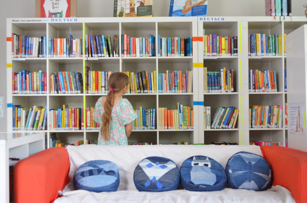 In dem gemütlichen Raum haben über 8000 Bücher ihren Platz, darunter Werke in Deutsch, Italienisch sowie in weiteren Sprachen wie Arabisch, Englisch, Französisch, Persisch, Spanisch und Türkisch. Zudem gibt es eine Auswahl an Erwachsenenliteratur.
